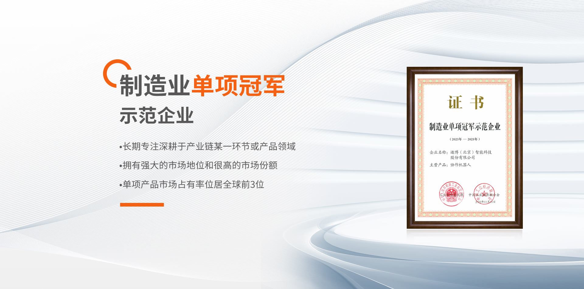 遨博智能參與制定機器人國家標準、行業標準28項,其中牽頭制定國家標準3項。參與國家重點項目21項,其中牽頭國家重點項目10項。